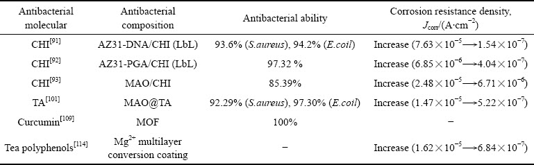 Table 4 Effects of different drugs on antibacterial and corrosion resistance of magnesium alloys