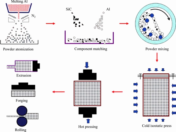 图1 粉末冶金法制备SiCp/Al复合材料的工艺路线图[12]