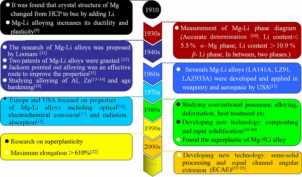 Fig. 1  Research history of Mg-Li alloys[10-25]
