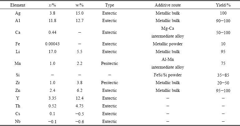 Table 1 Solubility of some alloying elements in magnesium[27-29]