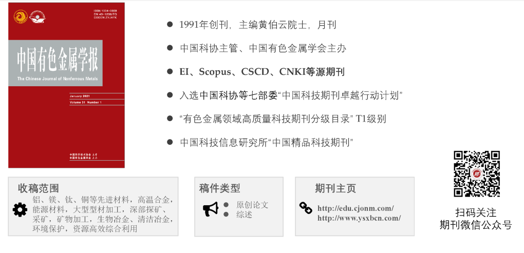 为了更好地服务广大作者、读者,提高论文查阅的效率,《中国有色金属学报》从即日起推出近年来热点研究领域的虚拟专辑。 欢迎各位学者关注、阅读、转发和引用!