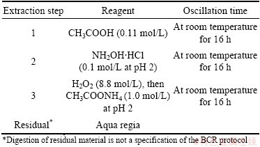 [18] PUEYO M, MATEU J, RIGOL A, VIDAL M, RAURET G. Use of modified BCR three-step sequential extraction procedure for the study of trace element dynamics in contaminated soils [J]. Environmental Pollution, 2008, 2(152): 330-341.