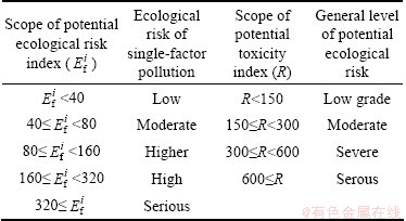 [16] DELGADO J, BARBA-BRIOSO C, NIETO J M, BOSKI T. Speciation and ecological risk of toxic elements in the estuarine sediments affected by multiple anthropogenic contributions (Guadiana salt marshes, SW Iberian Penins): Surfical sediments [J]. Science of the Total Environmrent, 2011, 409(19): 3666-3679.