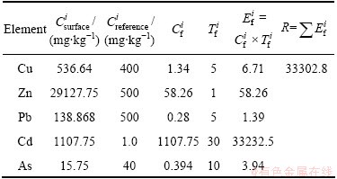 is the pollution coefficient for a certain heavy metal, which can reflect the pollution of the investigated region but cannot reveal the ecological effects and hazards;