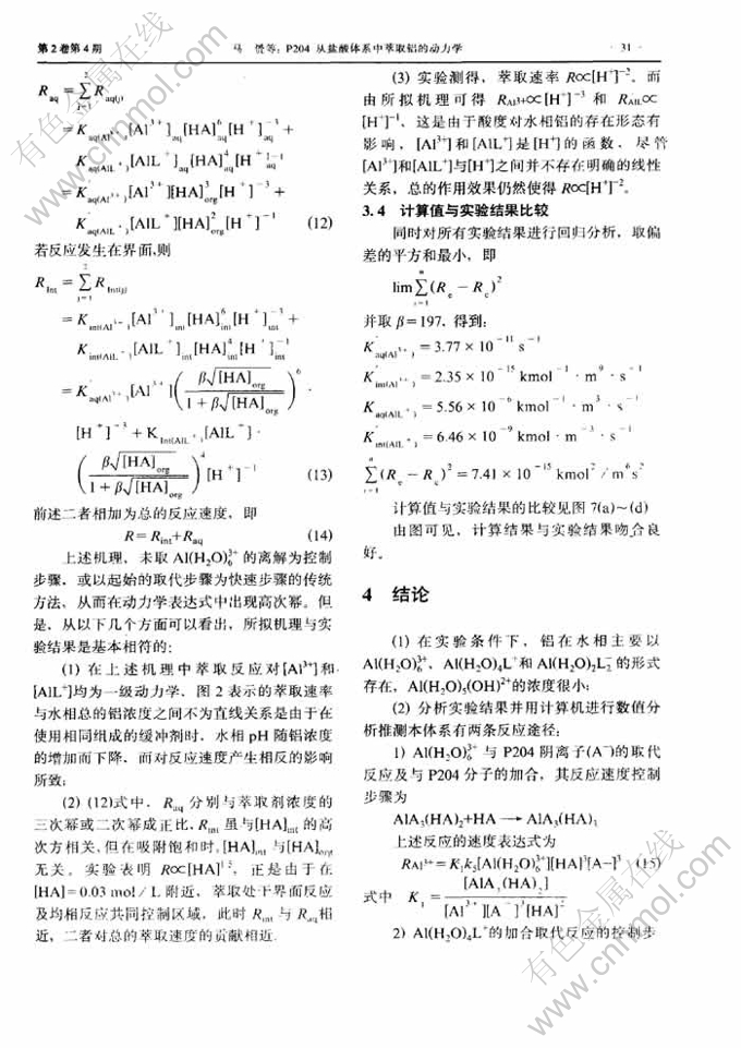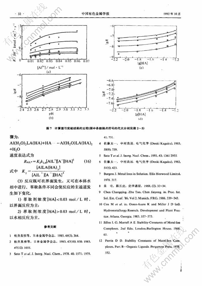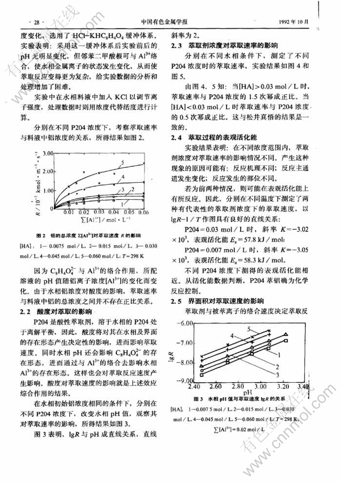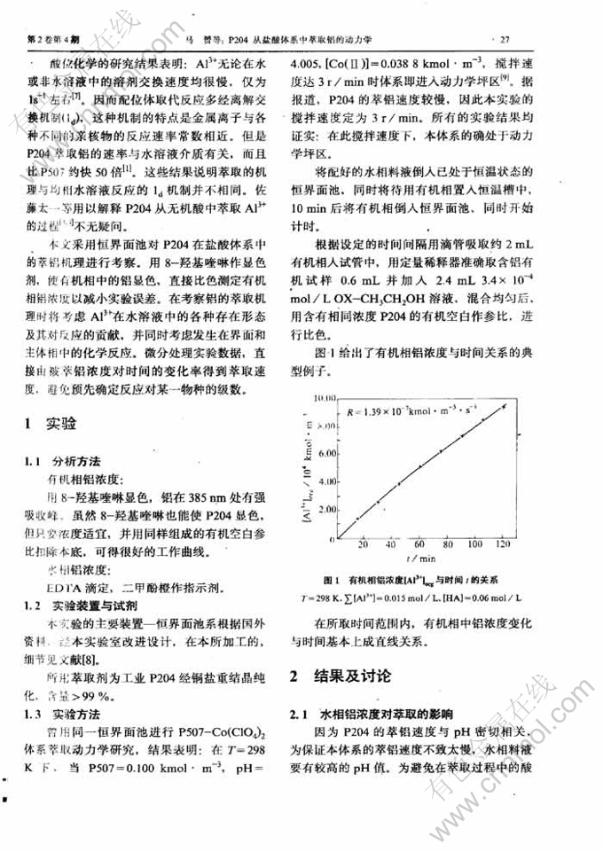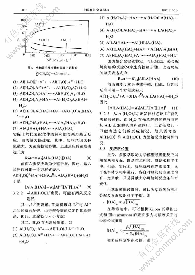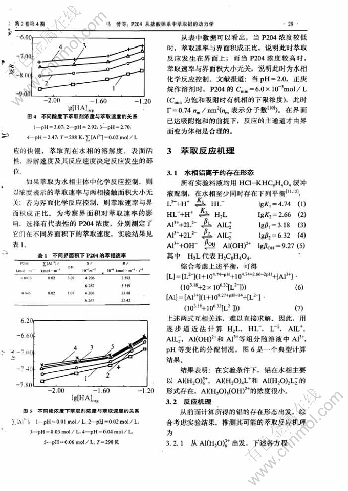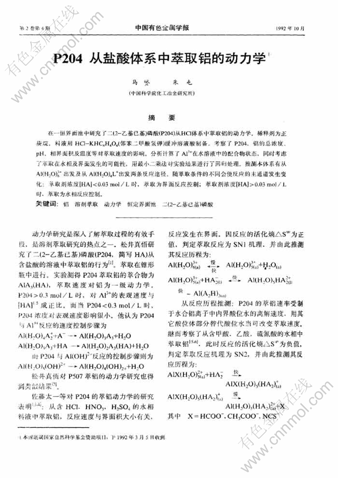 关键词:铝 溶剂萃取 动力学 恒定界面池 二(2—乙基已基)磷酸