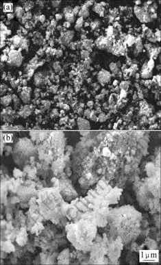 Fig.2 SEM images of carbon-coated LiFePO4/C composites: (a) Sample a; (b) Sample b