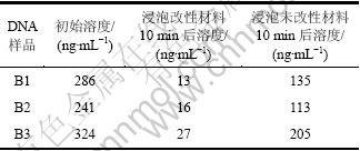 表2 Fe3O4@SiO2纳米复合粒子吸附酵母菌质粒DNA溶液20及30 min后