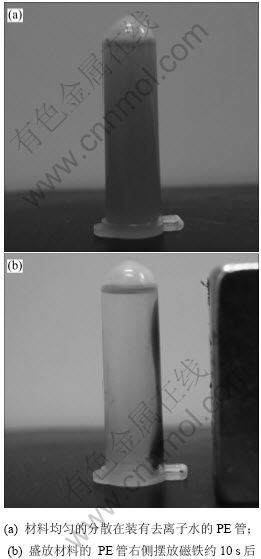 图4 Fe3O4@SiO2纳米复合粒子磁性能示意照片