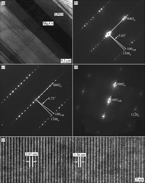 Fig. 4 TEM image of 24R and 18R LPSO structures (a), SAED pattern of