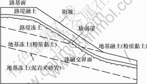 (1) 冻土融化后在冻融交界面附近富集水分形成的相对软弱带,是导致冻土斜坡路基发生失稳的根本原因。