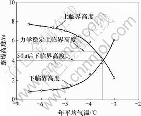 Fig.9 Curves of critical embankment height vs mean annual air temperature[16]