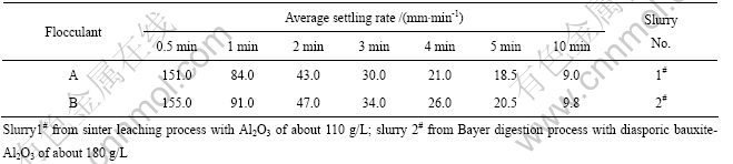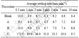 Table 1 Influence of flocculants on average settling rate of slurry