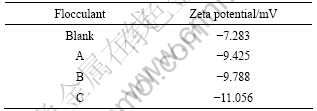 Zeta电位是表征分散体系稳定性的重要指标。表4所列为硅酸二钙颗粒吸附絮凝剂后表面Zeta电位的变化情况。