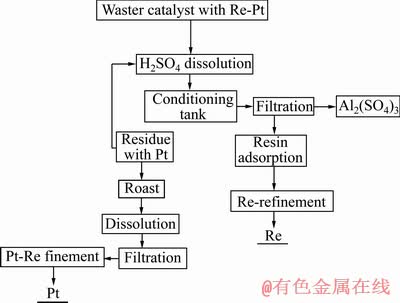 Fig. 2 Flow chart of recovery process with waste Pt-Re catalyst as raw material[16]