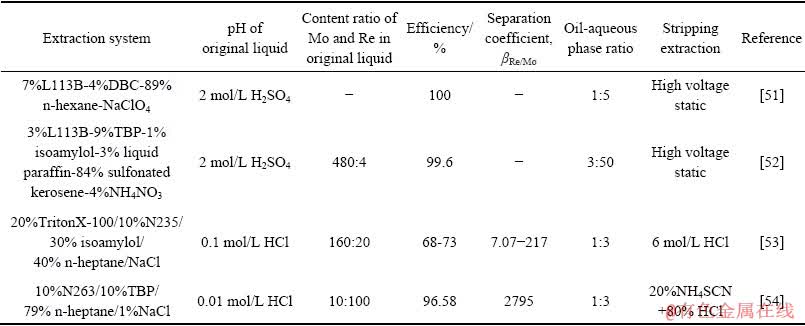 Table 3 Separation of rhenium and molybdenum by emulsion extraction system
