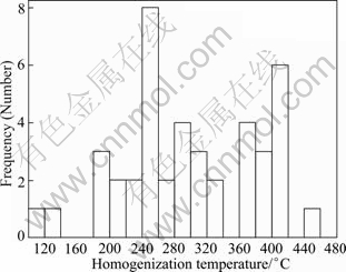 Fig. 3 Histogram showing homogenization temperatures of fluid inclusions from Longmenshan deposit