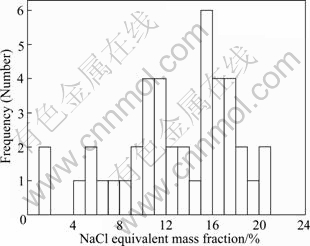 Fig. 4 Histogram showing salinities of fluid inclusions from Longmenshan copper-polymetallic deposit