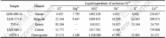 Table 2 Composition of liquid phase in fluid inclusions (mass fraction)