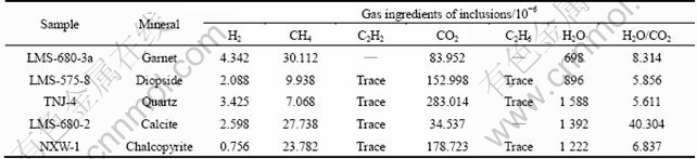 Table 3 Composition of gaseous phase in fluid inclusions (mass fraction)