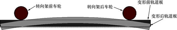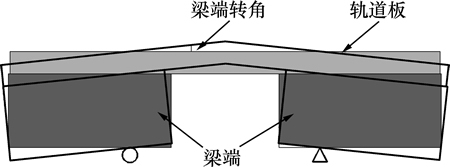 桥梁梁体造成的轨道板的塑性变形主要由梁端转角及梁体的收缩徐变产生。图3和图4所示分别为梁端转角及梁体徐变上拱下轨道板的变形示意图。