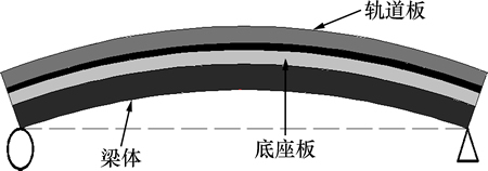 1) 相对于轨道板而言,钢轨自重及抗弯刚度均较小,因此忽略不计,扣件系统对形变能影响较小,计算中不予考虑。