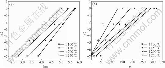 Fig.2 Relationships between strain rate and flow stress: (a) ln