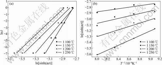 Fig.3 Relationships between strain rate, flow stress and deformation temperature: (a) ln[sinh(ασ)]—ln
