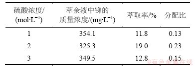 2.3.2  水相硫酸浓度对锑萃取率的影响