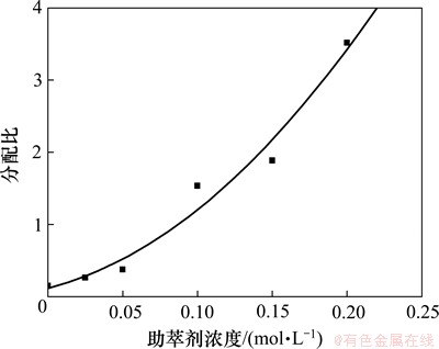 2.3.1  助萃剂浓度对锑萃取分配比的影响