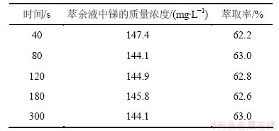 表3  萃取时间对锑萃取率的影响