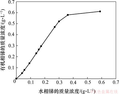 按照一定相比将有机相和被萃水相置于分液漏斗中,充分震荡5 min;之后静置分相至相界面清晰且有机相澄清后,取萃余液,用分光光度法测定锑含量,通过差减法计算有机相中锑的浓度。