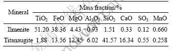 表1 钛铁矿与钛辉石矿样化学成分分析结果
