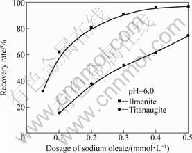 Fig.2 Effect of dosage of sodium oleate on floatability of minerals