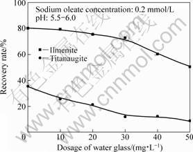 Key words: ilmenite; titanaugite; depressants; flotation; water glass