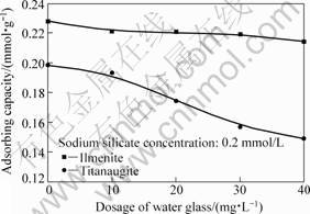 Fig.5 Effect of dosage of water glass on adsorption capacity of sodium oleate on minerals