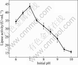 Fig.3 Effect of initial pH of culture medium on lipase production