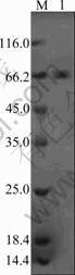 Fig.6 Molecular mass determination of lipase by SDS-PAGE (Lane M: Maker proteins; Lane 1: Purified lipase)