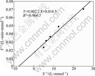 As Lineweaver-Burk plot showed, the Km and Vmax values of the lipase for p-NPP (Fig.9) were 0.13 mmol/L and 60.6 mmol/(L?min), respectively. For a lipase from Pseudomonas cepacia, the Km and Vmax values were 12 mmol/L and 30 μmol/(L?min), respectively, when the substrate was p-NPP[34]. And the Km and Vmax values of Pseudomonas aeruginosa SRT 9 with the p-NPP as substrate were 0.037 mmol/L and 188.6 mmol/(L?min), respectively [35]. These results indicated that the purified lipase from Aspergillus awamori HB-03 displayed very high affinity for p-NPP.