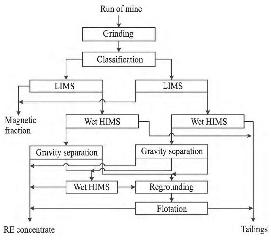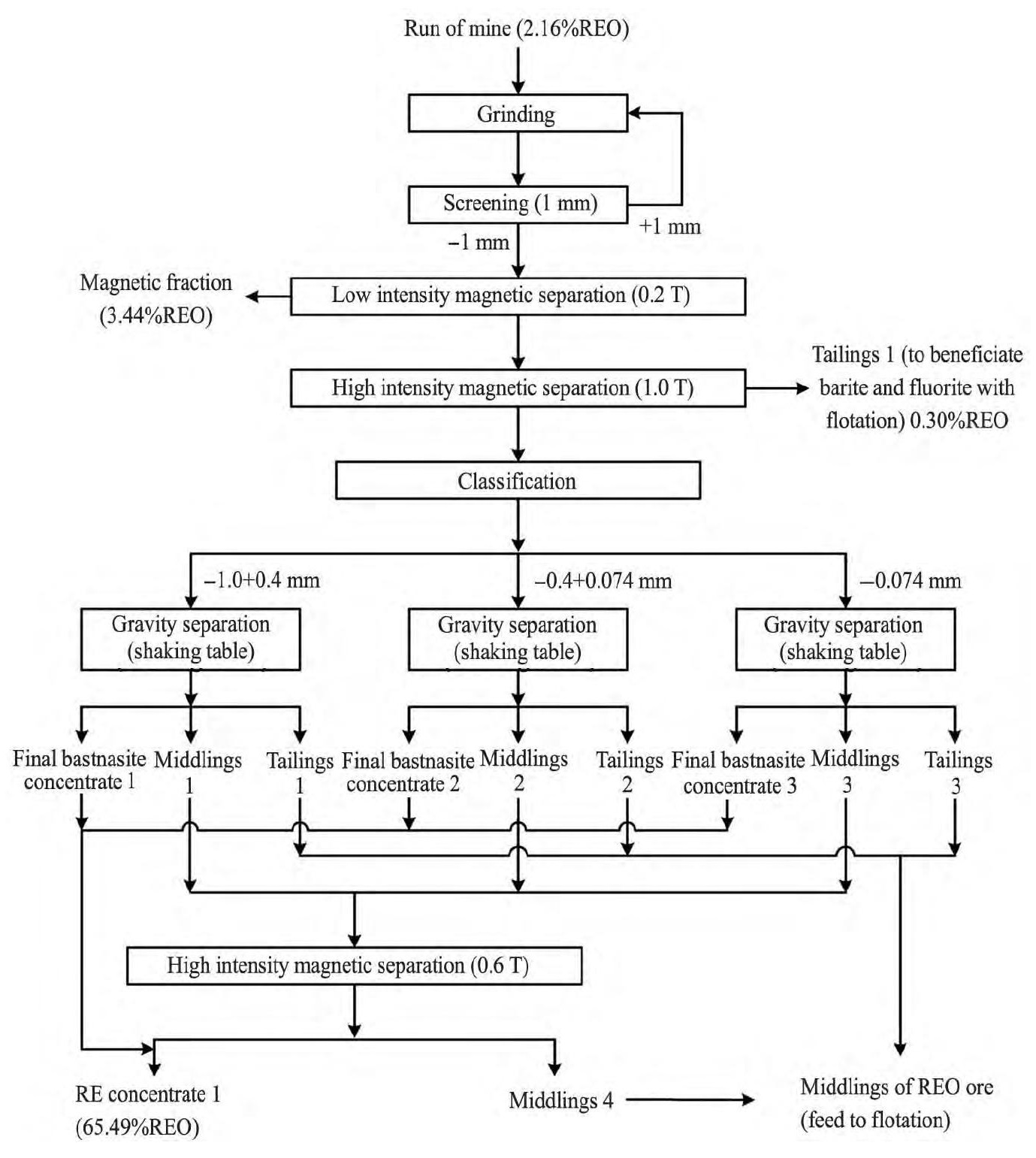 rare earth ores; bastnaesite; wet high intensity magnetic separation; gravity separation; flotation;