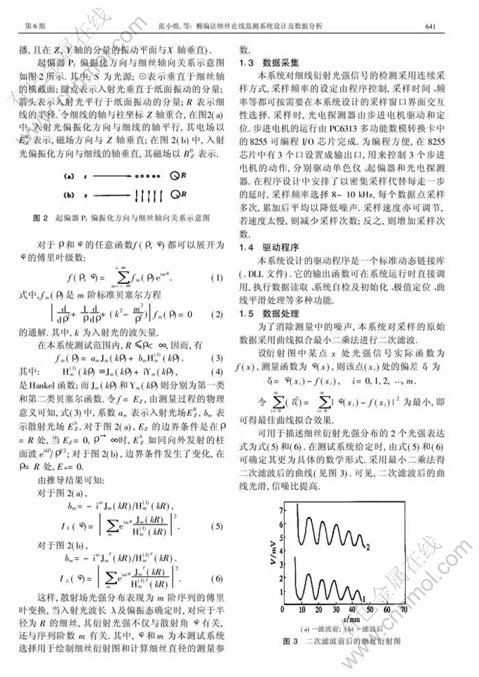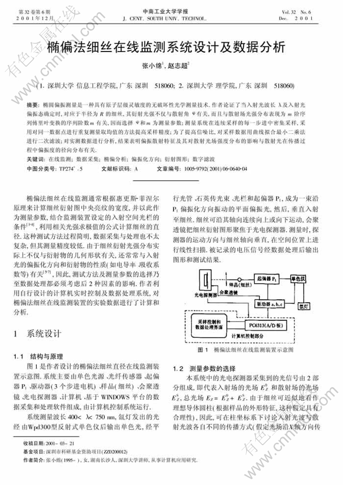 关键词:在线监测;数据采集;椭偏分析;偏振化方向;衍射图形;数字滤波
