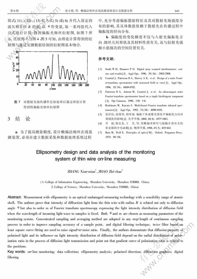 Key words:on-line monitoring; data collection; ellipsometry analysis; polarized direction; diffraction graphics; digital filtering
