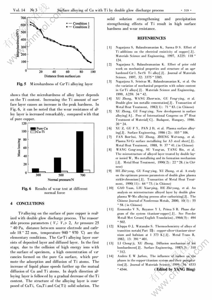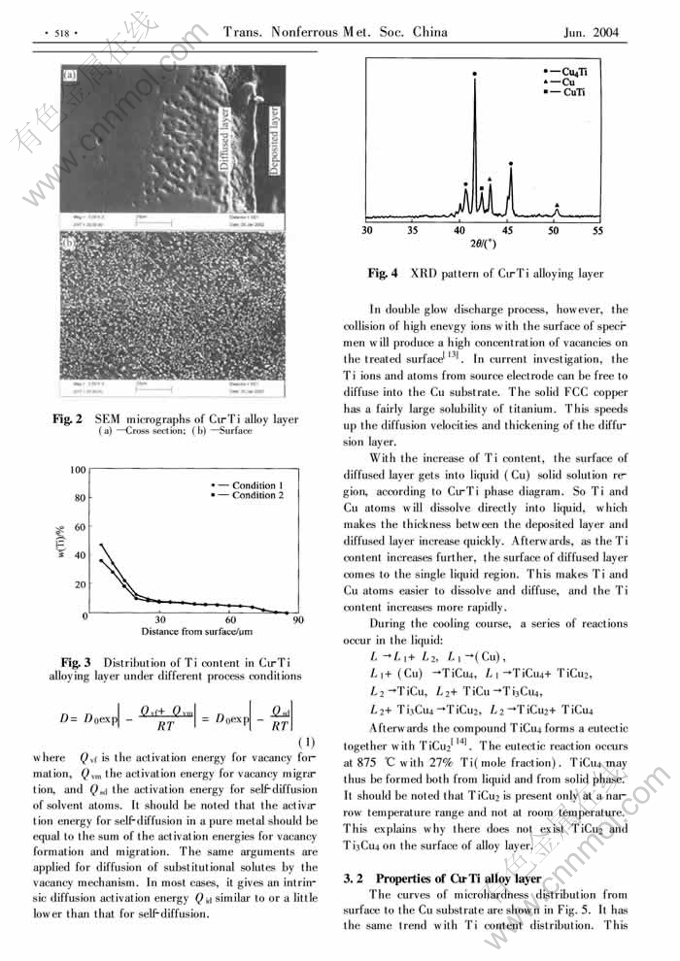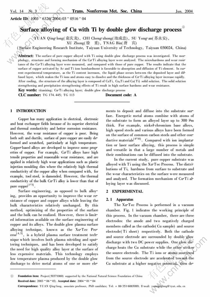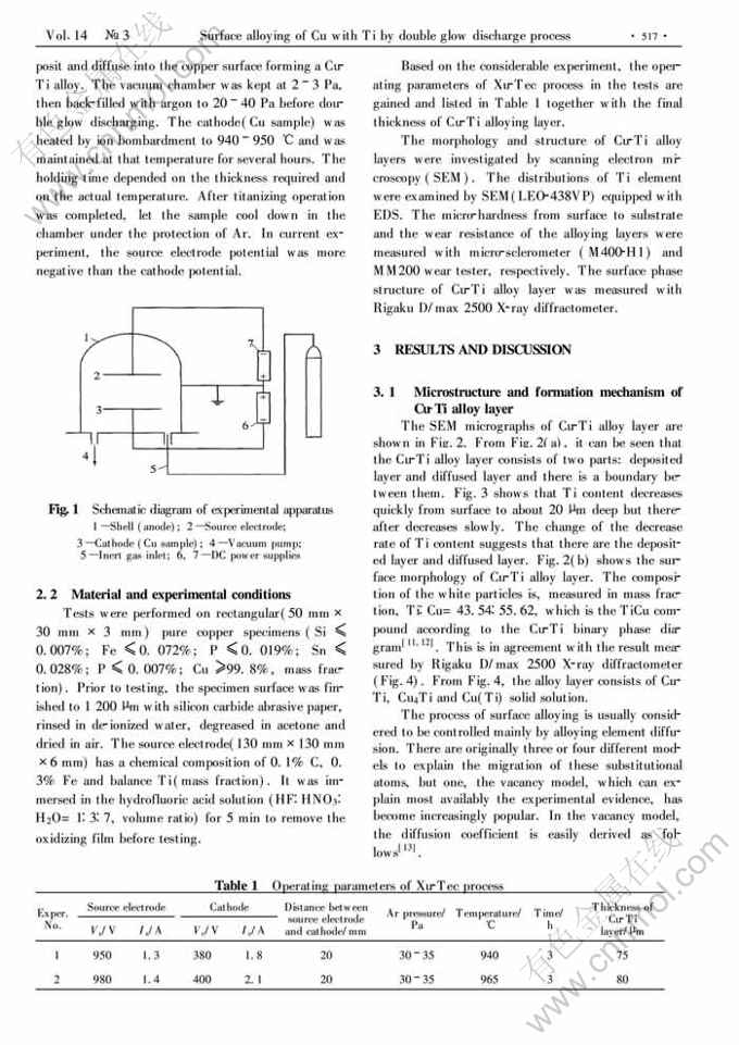 Key words:titanizing; Cu-Ti alloying layer; double glow discharge process