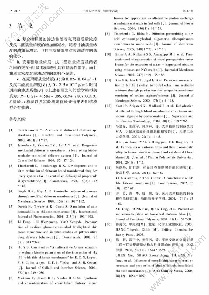 Key words:chitosan-based composite rate-controlling membranes; permeability coefficient; glut- araldehyde; hydrocortisone; mathematic model