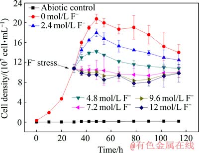 Fig. 2 Growth curves of co-culture at different fluoride stresses
