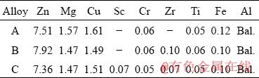 [26] SENKOV O N, SENKOVA S V, SHAGIEV M R. Effect of Sc on aging kinetics in a direct chill cast Al-Zn-Mg-Cu alloy [J]. Metallurgical and Materials Transactions A, 2008, 39(5): 1034-1053.