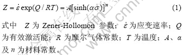 金属材料变形达到稳态时,考虑温度与应变速率,稳态应力可表述为Z因子关系[12?13]:
