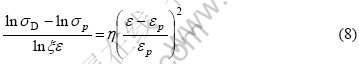 式(1)仅适用于稳态流变应力计算,只考虑了温度及应变速率对材料变形流动应力的影响。对于镁合金,未考虑该类合金在热变形趋于稳态过程动态再结晶对应力的影响。考虑动态再结晶对应力的影响[14]