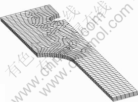 基于上述理论,采用有限元软件Marc对镁合金AZ31薄板不同温度下单向拉伸进行仿真,将模型划分为3 460个实体单元。镁合金AZ31的其它材料特性为:弹性模量E=45 GPa,泊松比μ=0.35。基于动态再结晶热粘塑性理论,拉伸初始网格如图1所示。
