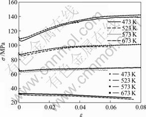 3) 塑性变形时,动态再结晶使镁合金薄板出现动态软化现象,流动应力降低。