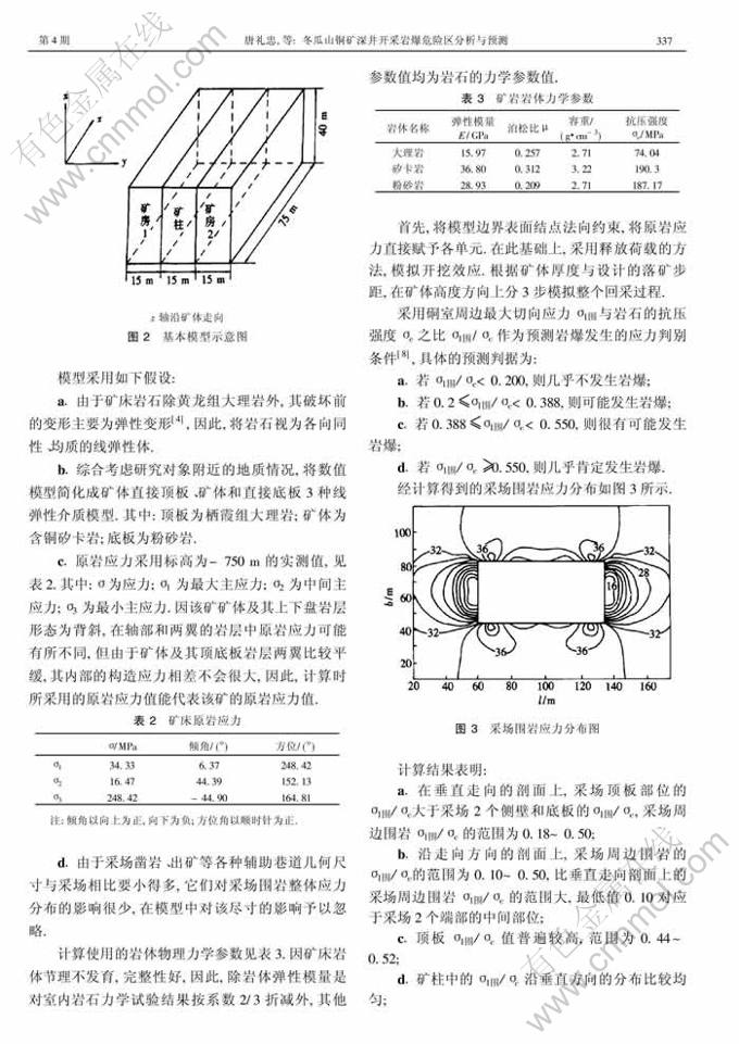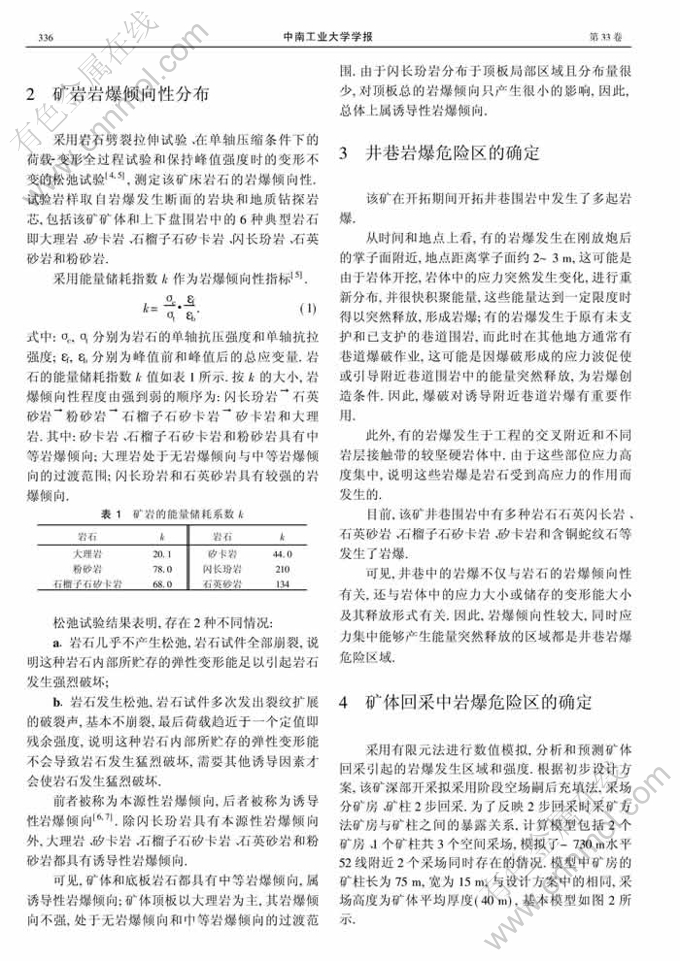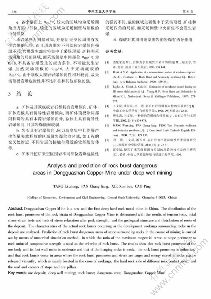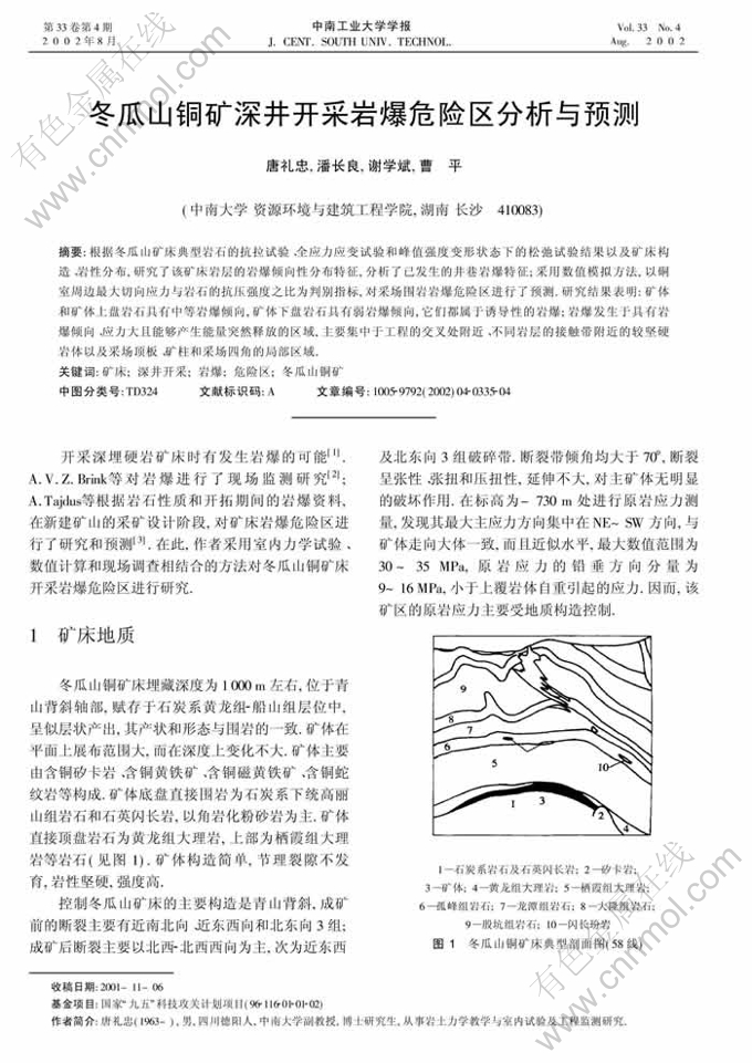 关键词:矿床;深井开采;岩爆;危险区;冬瓜山铜矿